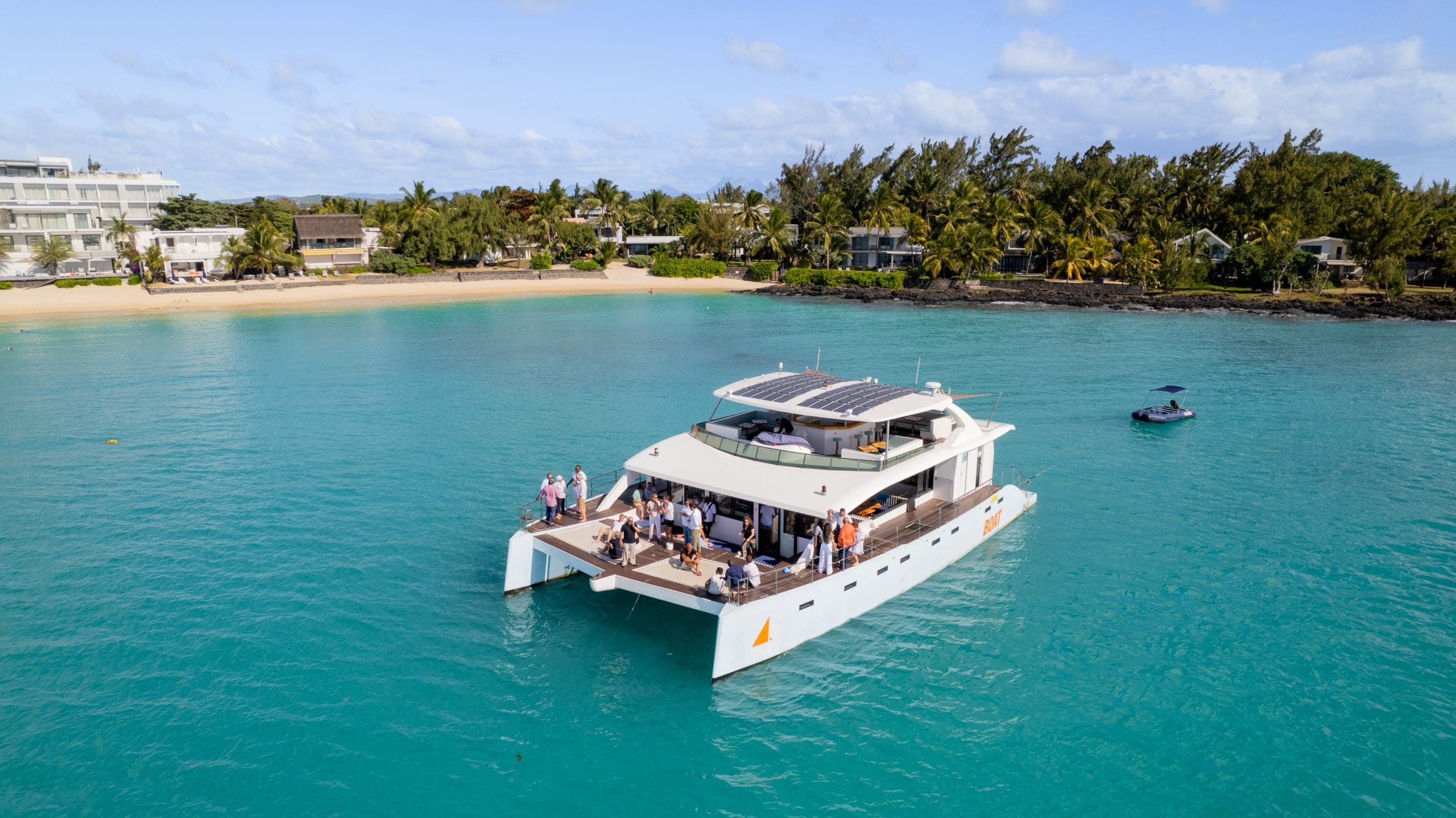 The Groove Boat, a motorized catamaran, offers exceptional sailing comfort and is fully designed and built in Mauritius.